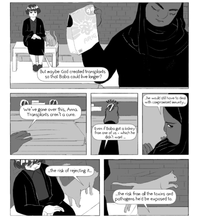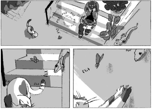 In these first two pages, cats appear in scenes that echo Anna and Layla’s playful, warm, and supportive moments in their close friendship.